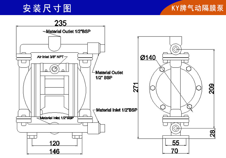 11、KY增強(qiáng)型氣動隔膜泵可做多種材質(zhì)泵體,具有良好的抗腐蝕性,適用于各種介質(zhì)