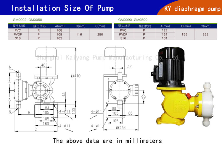 5.GM計(jì)量泵加藥泵的計(jì)量范圍最大可達(dá)500L/H,壓力最高可達(dá)1.2Mpa。