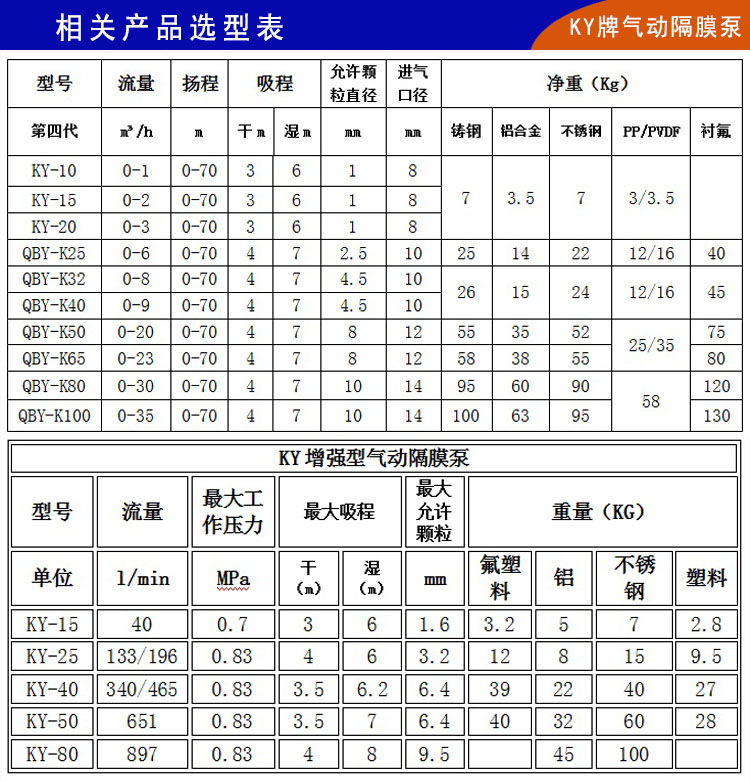 10)、KY增強型氣動隔膜泵可輸送較粘的液體(粘度在1萬厘泊以下);