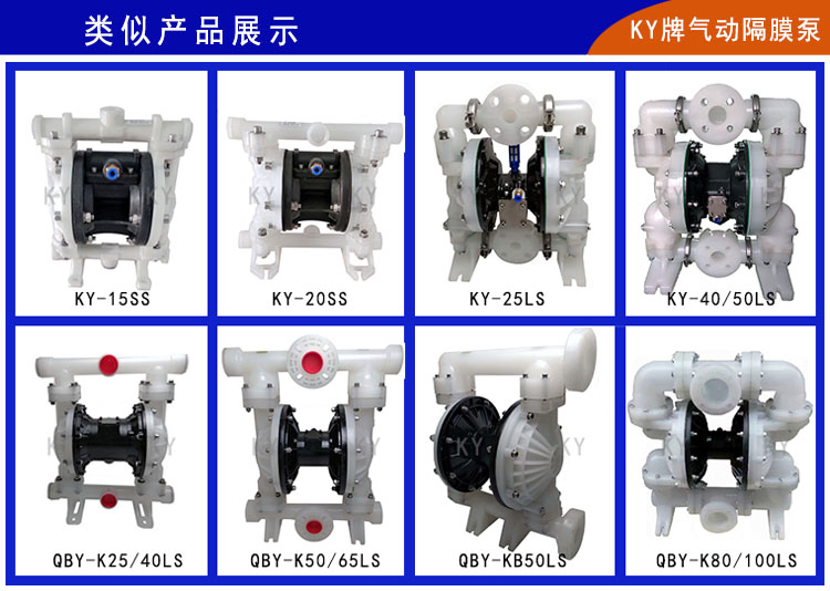 9、KY型工程塑料氣動隔膜泵整體構(gòu)造上更加優(yōu)化,泵腔和主管路都有明顯加強,自吸功能和流量揚程都有很大改善(最大流量/54立方/小時,最大揚程80米);被客戶成為超大流量氣動隔膜泵和壓濾機專用氣動隔膜泵。