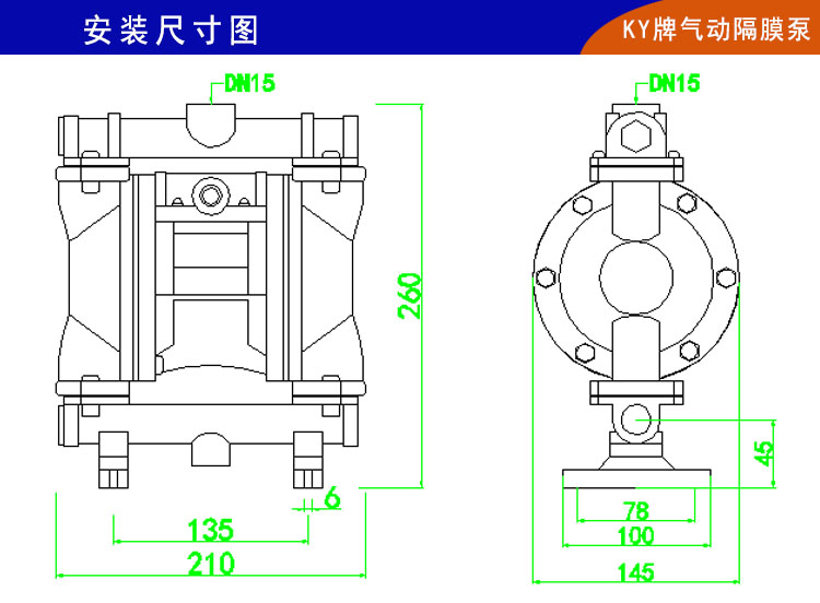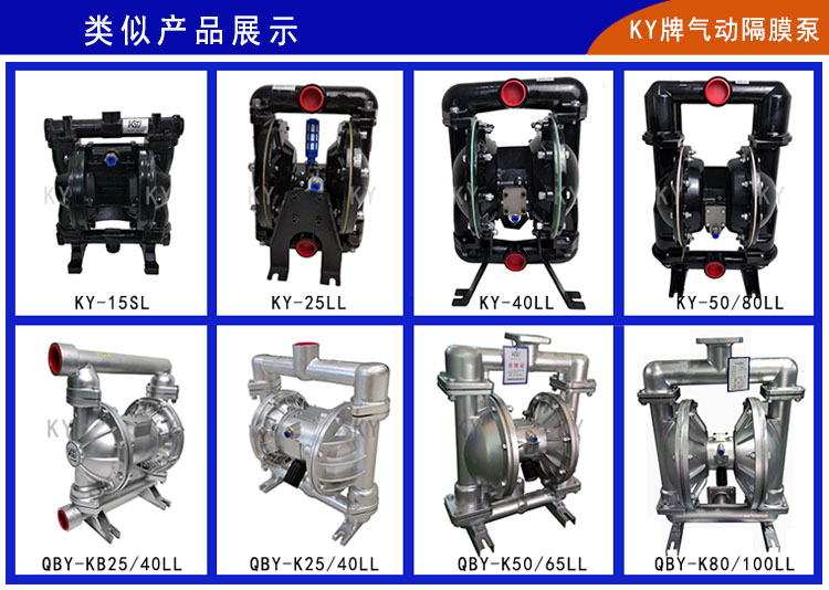 9、KY牌鋁合金氣動(dòng)隔膜泵整體構(gòu)造上更加優(yōu)化,泵腔和主管路都有明顯加強(qiáng),自吸功能和流量揚(yáng)程都有很大改善。