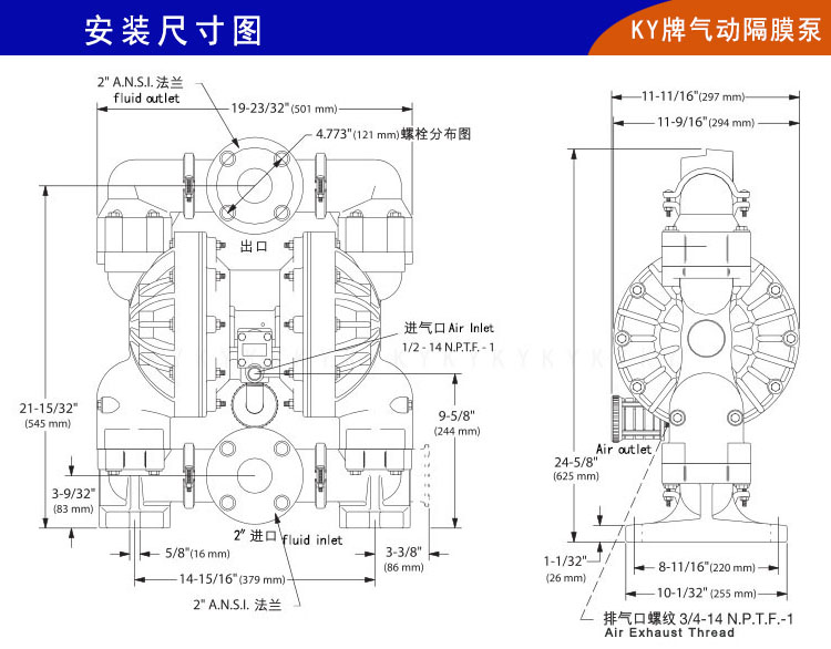 5)、KY增強型氣動隔膜泵,配齊裝置進一步革新,中間體和隔排為一體式;助動軸和助動滑塊也改為一體式生產,大大提高了空氣利用效率,避免了因氣壓不穩定而產生的死機、停機;真正做到了無死機,和自動化機械設備做到無縫連接。