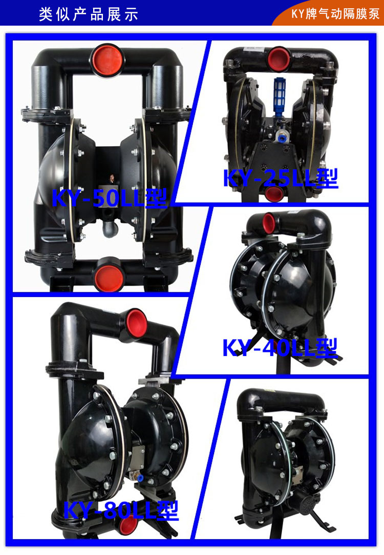 9、KY牌鋁合金氣動隔膜泵整體構造上更加優化,泵腔和主管路都有明顯加強,自吸功能和流量揚程都有很大改善。
